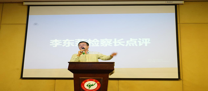 入队仪式结束后,南沙区人民检察院李东蓊副检察长对本场比赛进行了点评,李检首先从自身辩论经验谈起,对我们学院的辩论氛围表示高度赞赏,以一种幽默风趣的语音,对场上两支队伍的表现进行了全面的点评,为双方对辩题的讨论提供了新的切入点,李检接地气的语言引起同学阵阵喝彩,点评的最后,李检提出,作为法律人,应跳出惯性思维,保持司法自信,不受舆论左右,同学们表示受益匪浅。