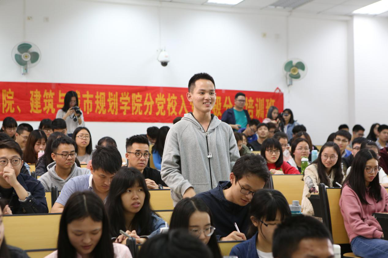 仪式由建筑与城市规划学院的党委书记陈立新老师主持。在建筑与城市规划学院龚兆先院长发表了党课相关讲话后,马克思主义学院的蒋义丹教授、环境科学与工程学院的党委副书记肖杏烟老师为我们进行授课。出席本次开班仪式和党课讲座的其他成员还有建筑与城市规划学院党委副书记李洪波老师、法学院党委副书记钟日来老师,以及两个学院的学工办老师、学生党支部书记和百名学生入党积极分子。