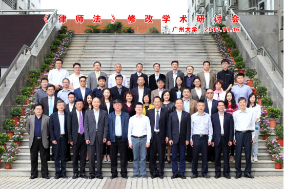 2017年11月16日,《律师法》修改学术研讨会在广州大学行政西楼后座二楼会议厅举行。本次研讨会由广州大学法学院(律师学院)和中国人民大学诉讼制度与司法改革研究中心联合主办,由广州大学法学院院长张泽涛主持,广州大学副校长傅继阳、中华律师协会副会长欧永良、中国人民大学诉讼制度与司法改革研究中心主任陈卫东在开幕式致辞。
