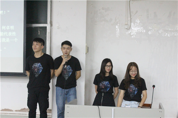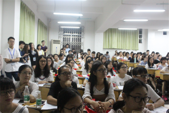 团委副书记何薇在之后祝贺了新生们的入学。她简单地介绍了团学的架构。希望新生们加入团学,为同学们服务、为学院服务。“你们不来,我们不走”,热情的鼓励让同学们流露出对加入团学的期盼。团委、学生会中各部门充满活力、激情洋溢的演讲吸引着新生们,他们认真专注地听着各位部长的演讲。