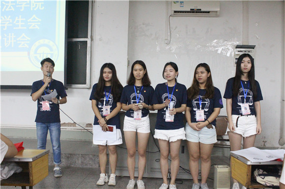 这在里,期待各位新生的加入,我们法学院的团委、学生会和法律咨询服务社需要新鲜的血液注入,从而让组织发展地更好。也希望同学们在组织里能锻炼自己的综合能力,发挥自己的长处,培养自己的服务精神,服务同学、服务学院、服务学校、服务社会,实现自我价值。