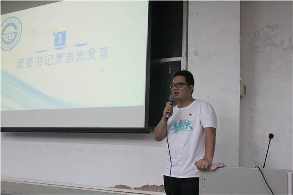在学生会林冠宇副主席主持开篇后,团委书记罗志光老师发表讲话。他鼓励大家给自己、朋友、父母和老师掌声,激励自己。提醒大家,自己升入大学后要独立自强,不断提高自我能力。无论是选择了团委、学生会还是法律咨讯服务社,都要有组织有纪律,认可组织的理念。希望大家踊跃参加面试,加入团学去为同学们服务、为学院服务。也劝告大家不忘初心,加入组织后也保持初衷,理解并坚持学院的团委、学生会为同学们提供服务的工作理念。