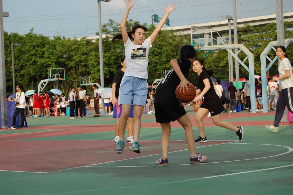接下来,女生也不甘示弱,展开了三对三的比拼。“谁说女子不如男”在这里一语道破。女生的飒爽英姿引发了阵阵喝彩。