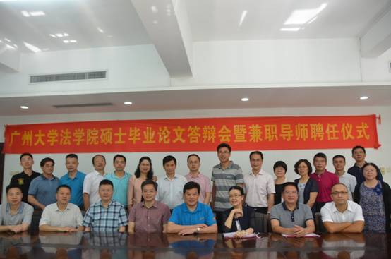2017年6月3日上午,在广州大学大学城校区法学院201会议室,由蒋银华副院长主持举行了广州大学法学院硕士毕业论文答辩会暨兼职导师聘任仪式。首先蒋银华教授代表广州大学法学院对诸位专家学者的到来表示了真挚的感谢,然后参会者结合所在领域依次进行了发言,介绍本领域的发展现状及前景,最后由张泽涛院长总结发言,阐述了广大法学院的教学配置,并对发展愿景进行了描绘,希望和与会嘉宾所在单位建立长效联系,发展教学实践、学生实习基地,实现教学相长、理论与实务的充分衔接,共同为广州市的人才培养努力!